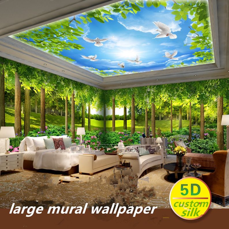 Compre 5d Encargo De Seda Gran Mural Fondos De Pantalla 3d Bosque Naturaleza Paisaje Papel Pintado Del Arbol Verde Restaurante Sala De Mural De Revestimiento De Paredes A 44 22 Del Luckyqiyi